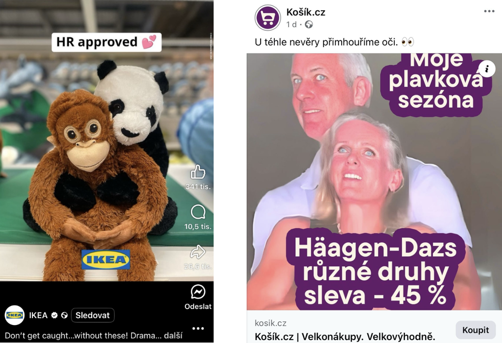 Ikea si zachovala odstup, humor i brandový filtr. Na jejich sociálních sítích se objevil post s plyšovým orangutanem a pandou v objetí. Text? „HR approved 💕“